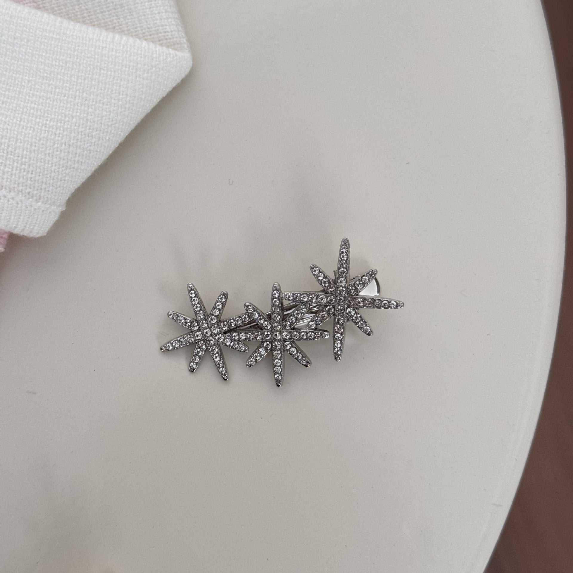 This octagram rhinestone hair clip adds a sparkling, trendy touch to any hairstyle. Perfect for bangs, side hair, or securing flyaways, it features a lightweight design for comfortable all-day wear. Ideal for summer or everyday styling.