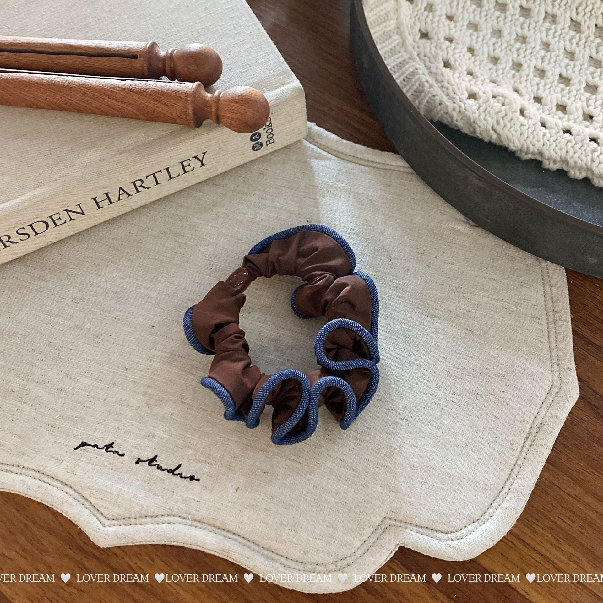 This chic brown fabric hair elastic features stitched edges and high elasticity for a secure, comfortable hold. Simple and versatile, perfect for everyday hairstyles and effortless styling in fall and winter.