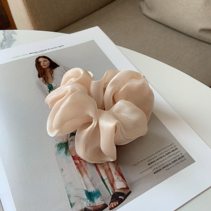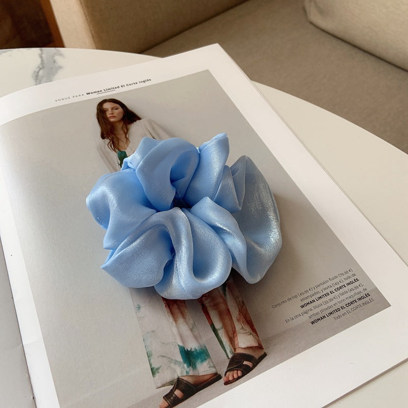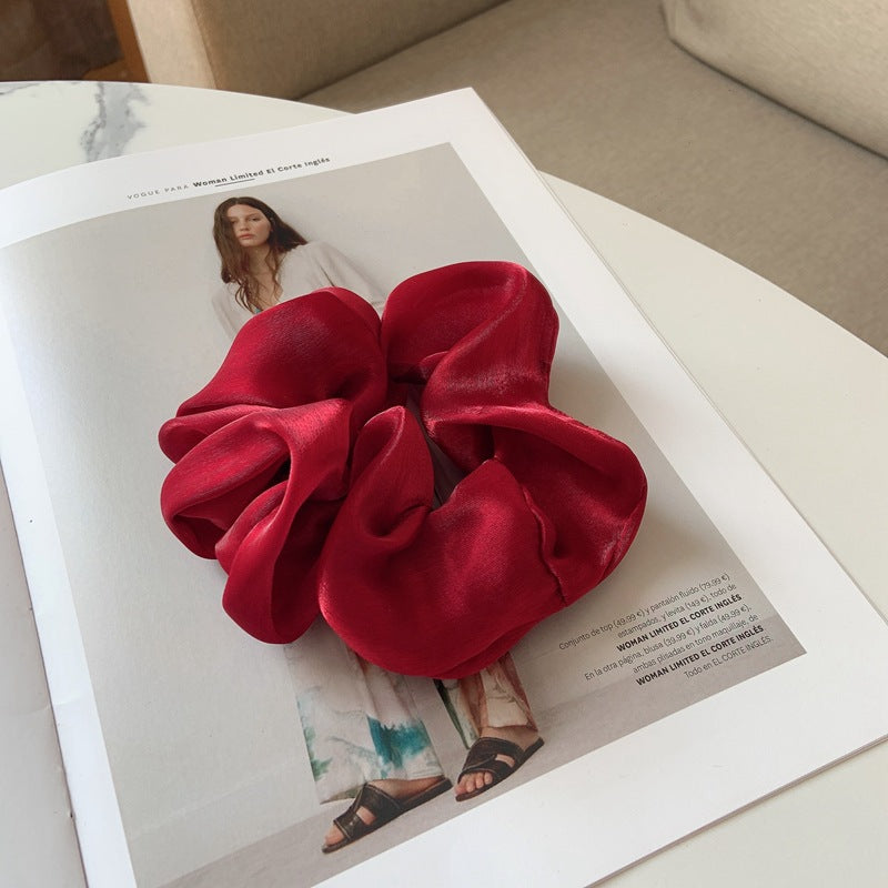 This elegant satin hair scrunchie features a shiny, solid-color design, perfect for a chic French-inspired look. Soft and gentle on hair, it’s ideal for securing ponytails or buns while adding a sophisticated touch to any hairstyle.