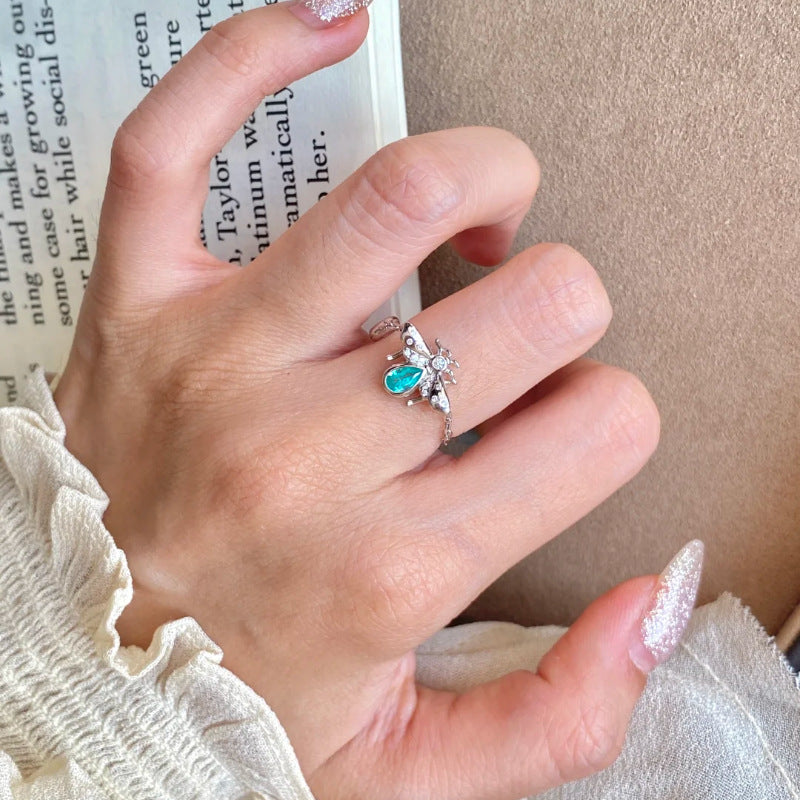 This elegant jewelry set features aquamarine accents with bee-inspired designs and delicate tassels, including earrings, a ring, and a necklace. Refined and versatile, perfect for everyday wear or special occasions.
