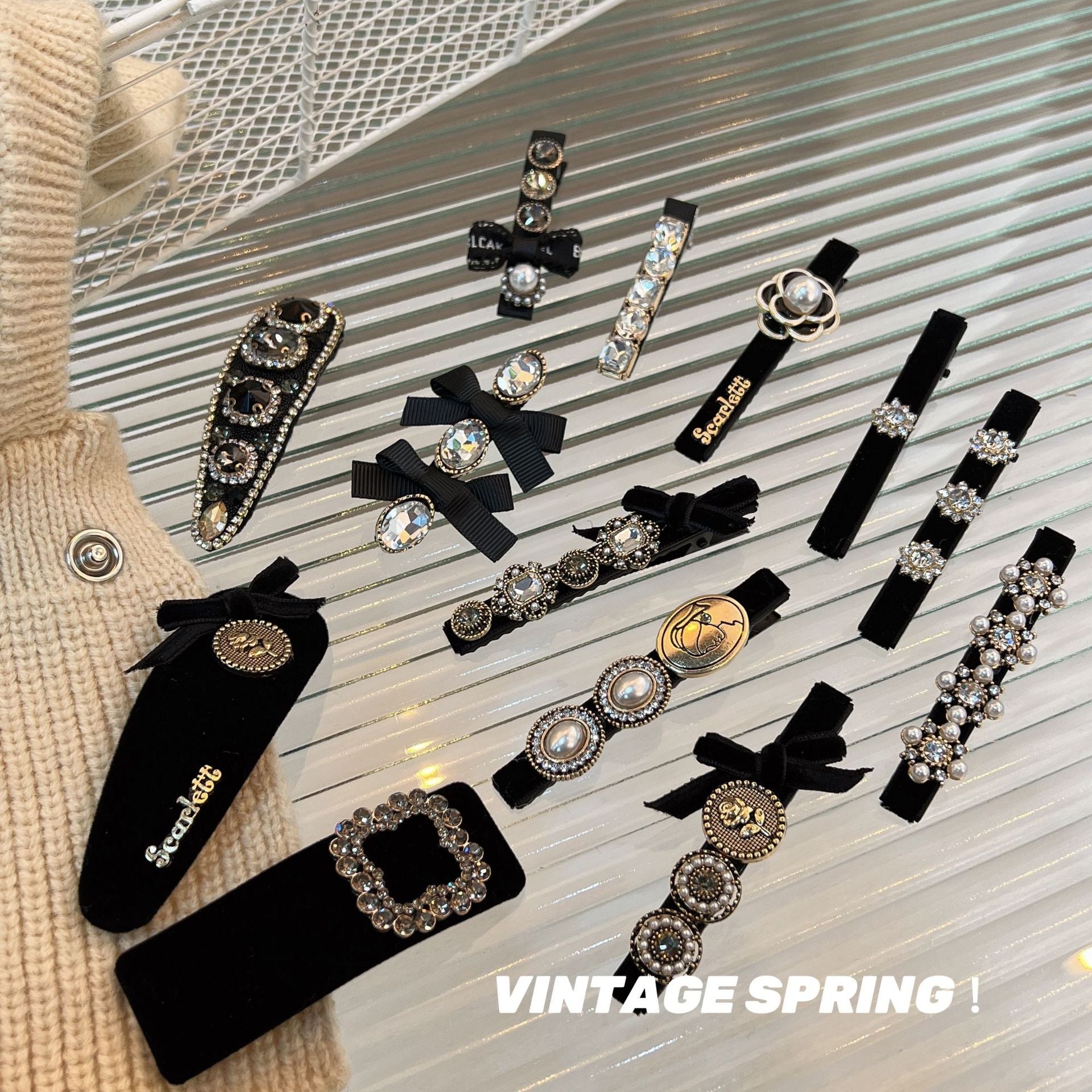 This chic hair clip features a classic black camellia paired with pearls, rhinestones, and a stylish bow—bringing a sweet yet cool “Chanel-inspired” vibe. Perfect for securing bangs or adding a refined touch to side-clip hairstyles.