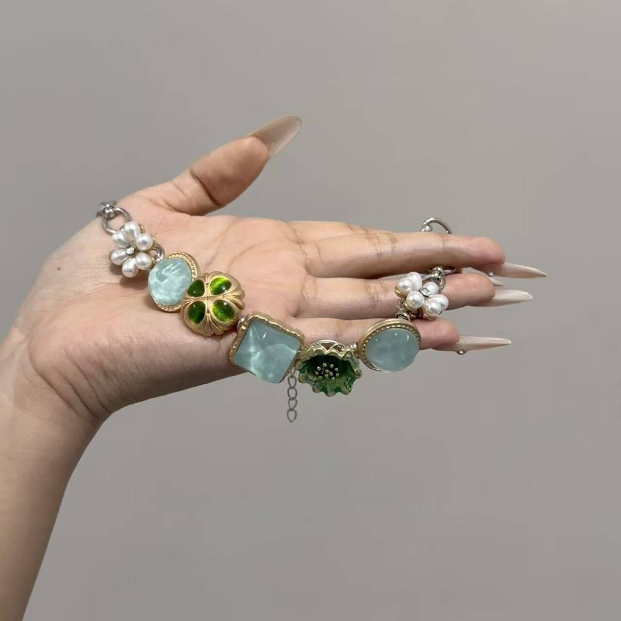 Natural blue shell with delicate bead design