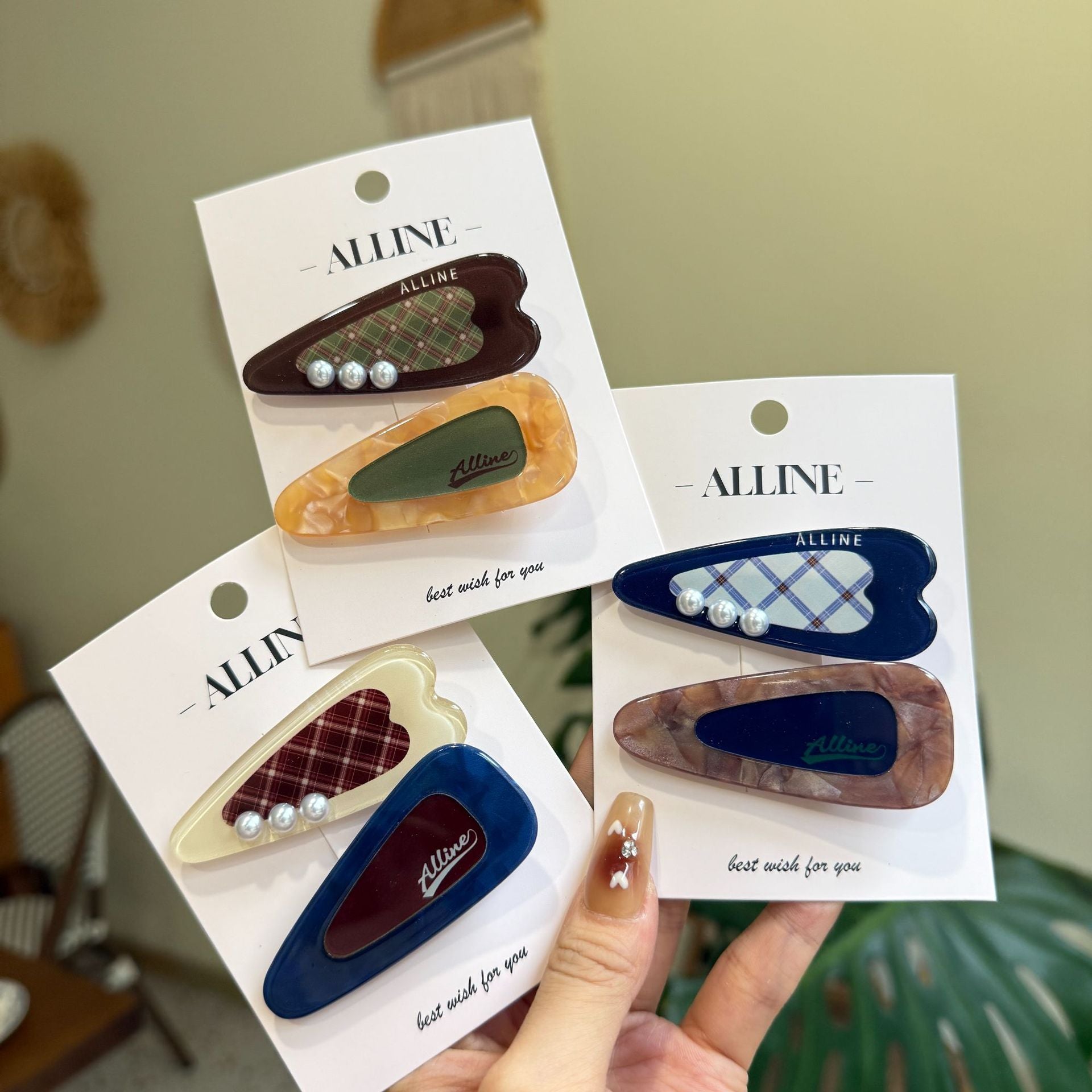This sweet hair clip features a clear heart design accented with delicate pearls. Finished with plaid or polka dot details, it’s perfect for bangs or side hair and adds a soft, girly touch to everyday hairstyles.