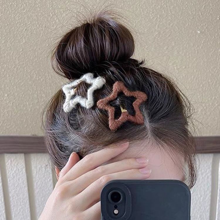 This cozy wool hair clip features a charming five-point star design, perfect for securing bangs or side hair. Adds a sweet and stylish touch to everyday hairstyles, ideal for women who love cute and trendy accessories.