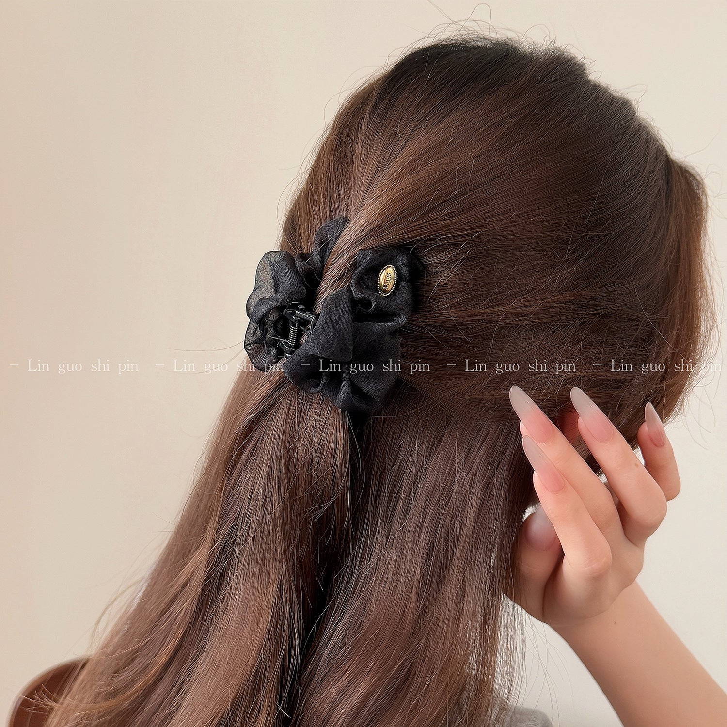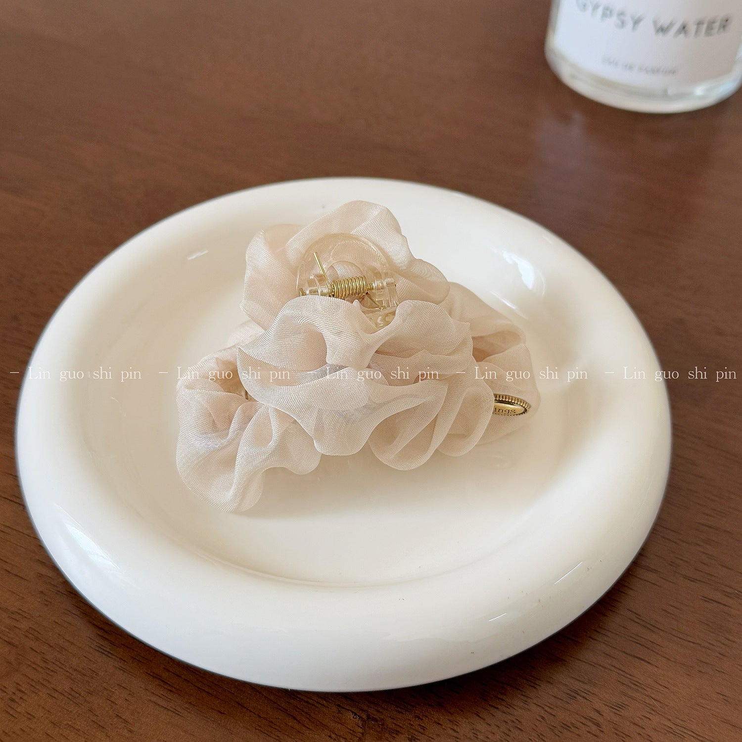 This small mesh claw clip features gentle pleats, perfect for creating elegant half-up hairstyles. Lightweight and refined, it secures hair comfortably while adding a sophisticated, airy touch to summer looks.