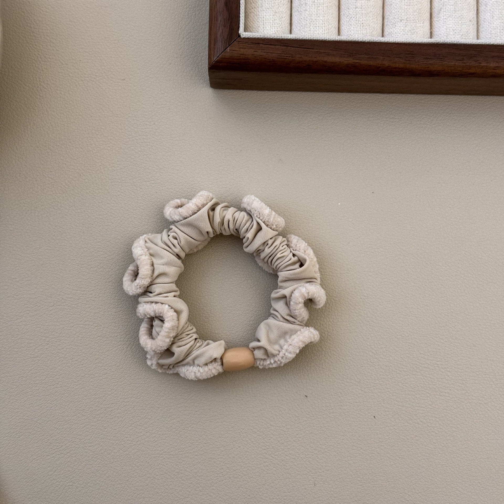 This fuzzy ruffle hair scrunchie features a soft plush texture with delicate frilled edges. Perfect for fall and winter, it offers a comfortable hold while adding a cute, cozy touch to ponytails or buns. Lightweight and gentle on hair.