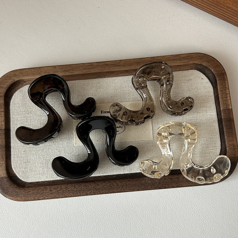This chic hair claw features a geometric wave design, ideal for high ponytails or half-up hairstyles. Lightweight and stylish, it adds a relaxed, fashionable touch to everyday looks.