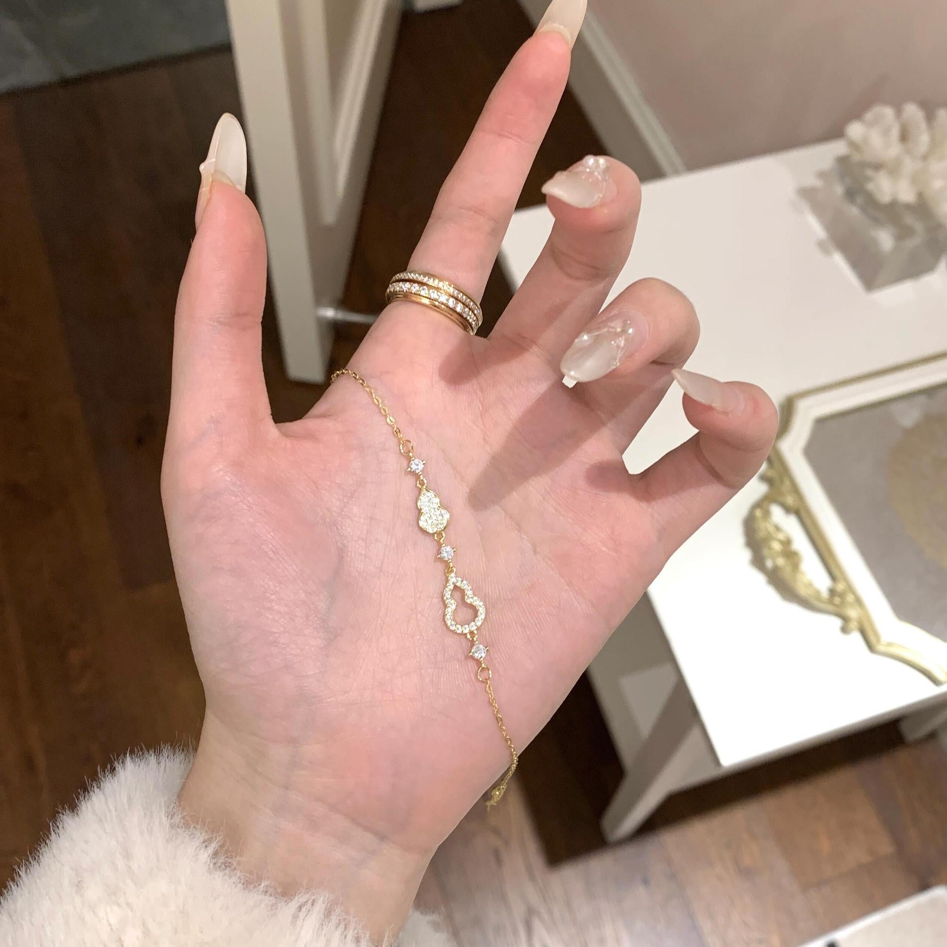 The Golden Wish bracelet embodies elegance and symbolism in one exquisite design. Crafted from premium S925 sterling silver, it features a sparkling gourd-shaped charm fully paved with brilliant zircons — a symbol of prosperity and good fortune. A dainty yet eye-catching piece that adds a refined glow to your daily style.