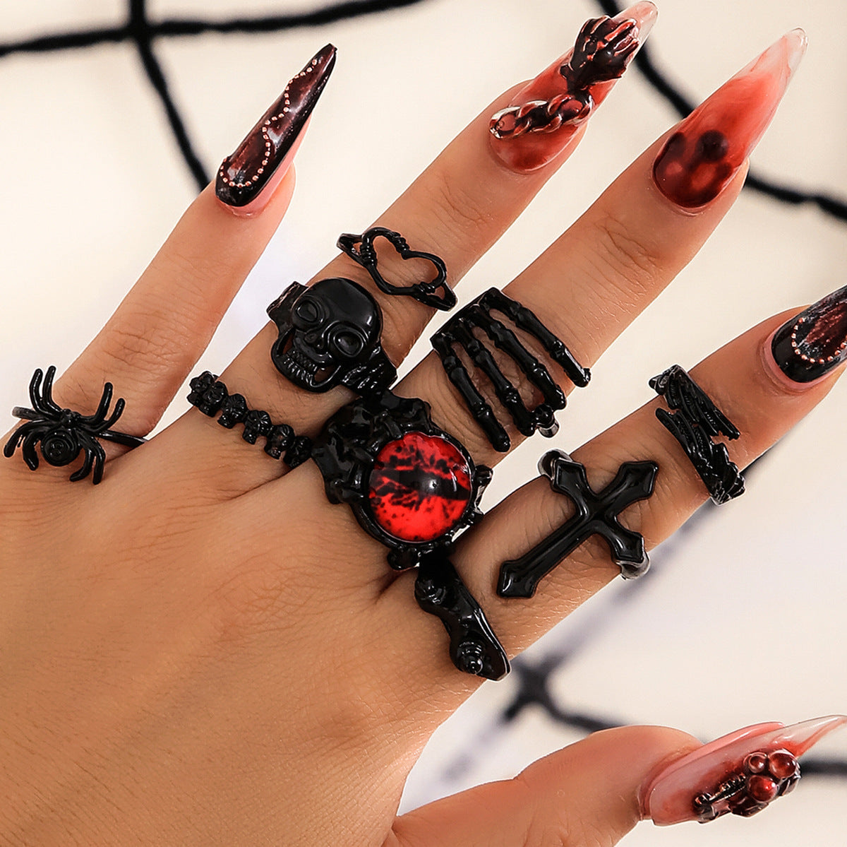 Rock edgy style with this gothic punk knuckle ring set. Featuring intricate carved bat and vintage-inspired designs, each ring is adjustable for a perfect fit. Ideal for layering or wearing as bold statement jewelry, perfect for couples or solo styling.