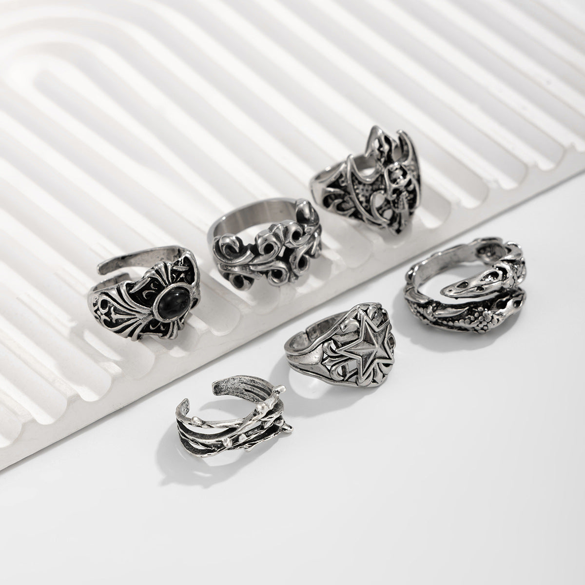 Make a bold statement with this gothic skull and star ring set for men. Adjustable and edgy, perfect for punk, hip-hop, or street-style looks. Ideal for layering or wearing individually, adding a striking touch to any outfit.