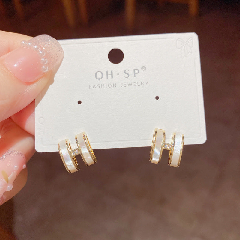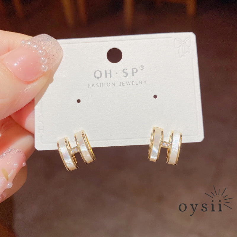 The Hermes Whisper earrings feature an elegant H-shaped design inlaid with luminous mother-of-pearl, set on S925 silver posts. Combining poetic minimalism with high-quality craftsmanship, these small-batch designer studs exude subtle luxury and personalized charm — ideal for daily styling, gifting, or expressing individuality with refined simplicity.