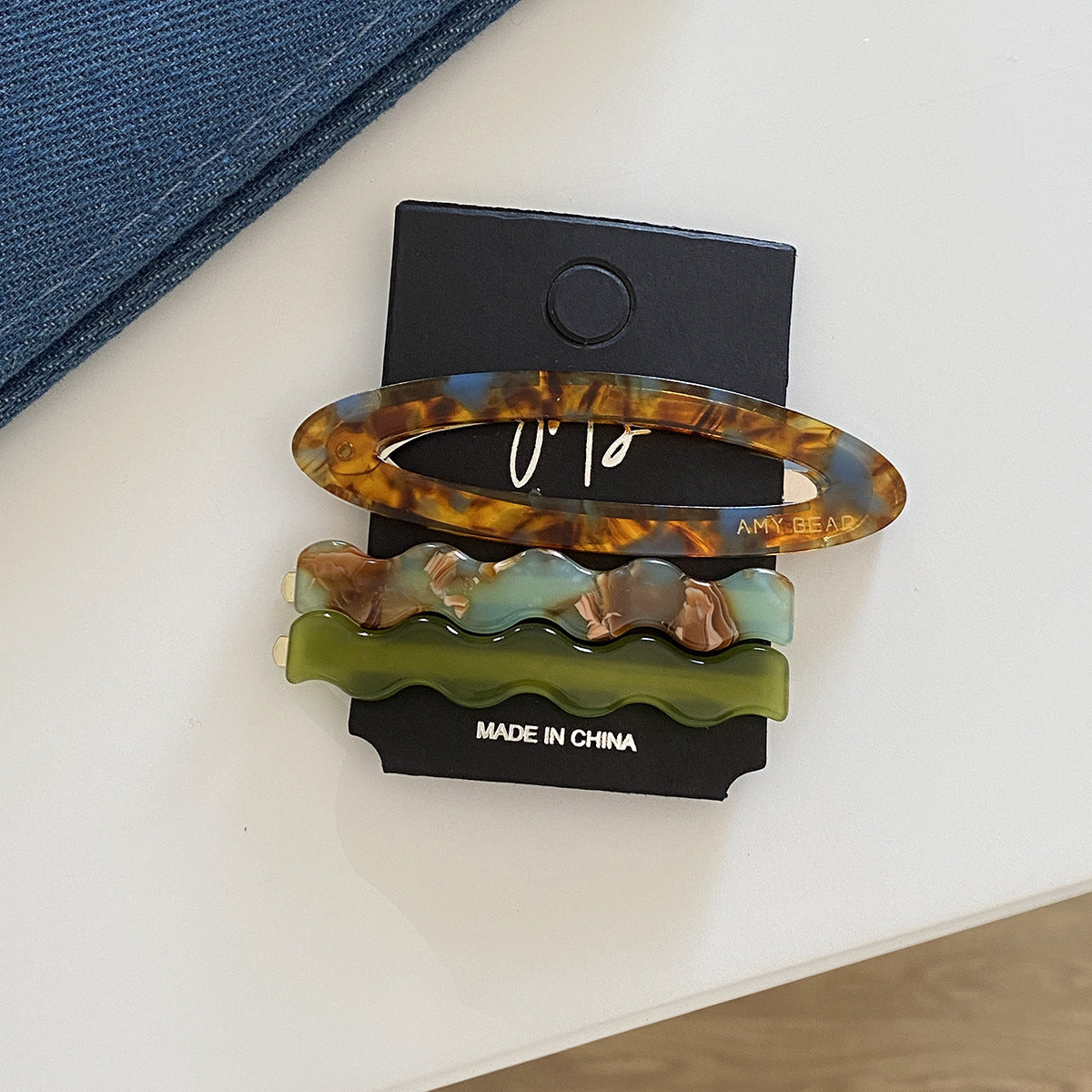 This chic hair clip set features wave-shaped acetate clips with a gold accent, perfect for securing bangs or side hair. Lightweight and versatile, it adds a trendy and elegant touch to spring and summer hairstyles in 2025.