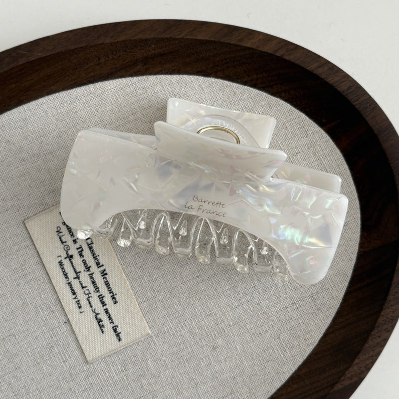 This large acetate hair claw clip combines elegance with practicality, perfect for securing updos or back hairstyles. Its smooth finish and sturdy grip keep hair in place while adding a polished, sophisticated touch. Ideal for autumn and winter styling or elevating everyday looks.