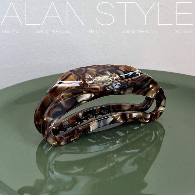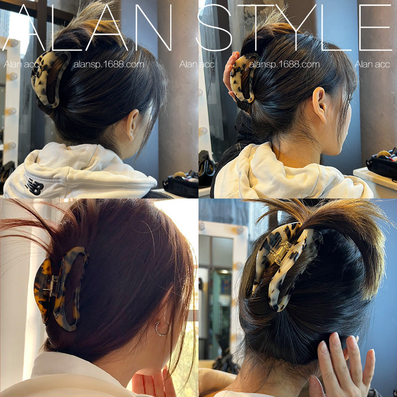 This oversized tortoiseshell acetate hair clip features a hollow design for a secure hold on updos, ponytails, or half-up styles. Elegant and vintage-inspired, perfect for everyday wear or special occasions.