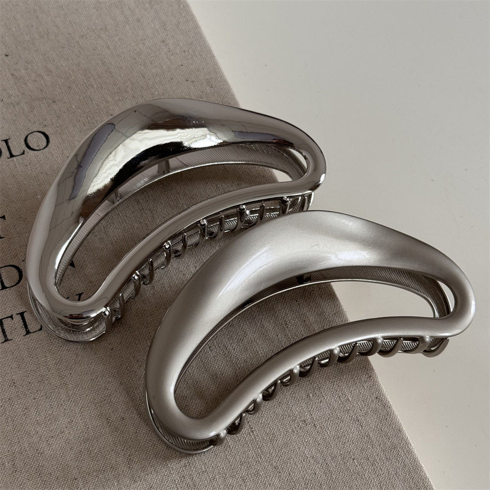 This large claw clip features a matte alloy finish with an intricate crescent cutout design, offering a refined and sophisticated look. Perfect for securing buns or half-up hairstyles, it adds a stylish metallic accent to any hairdo with ease and elegance.