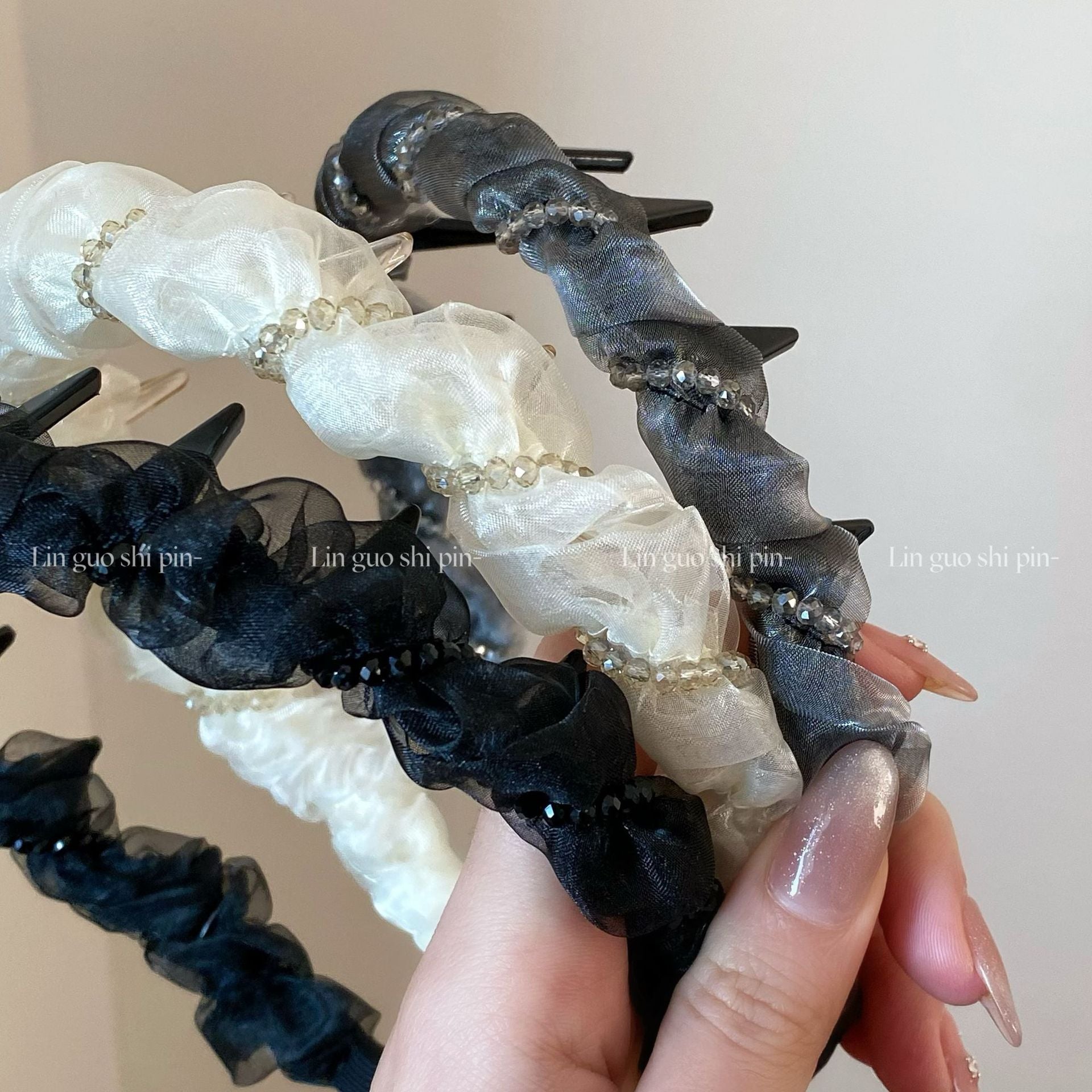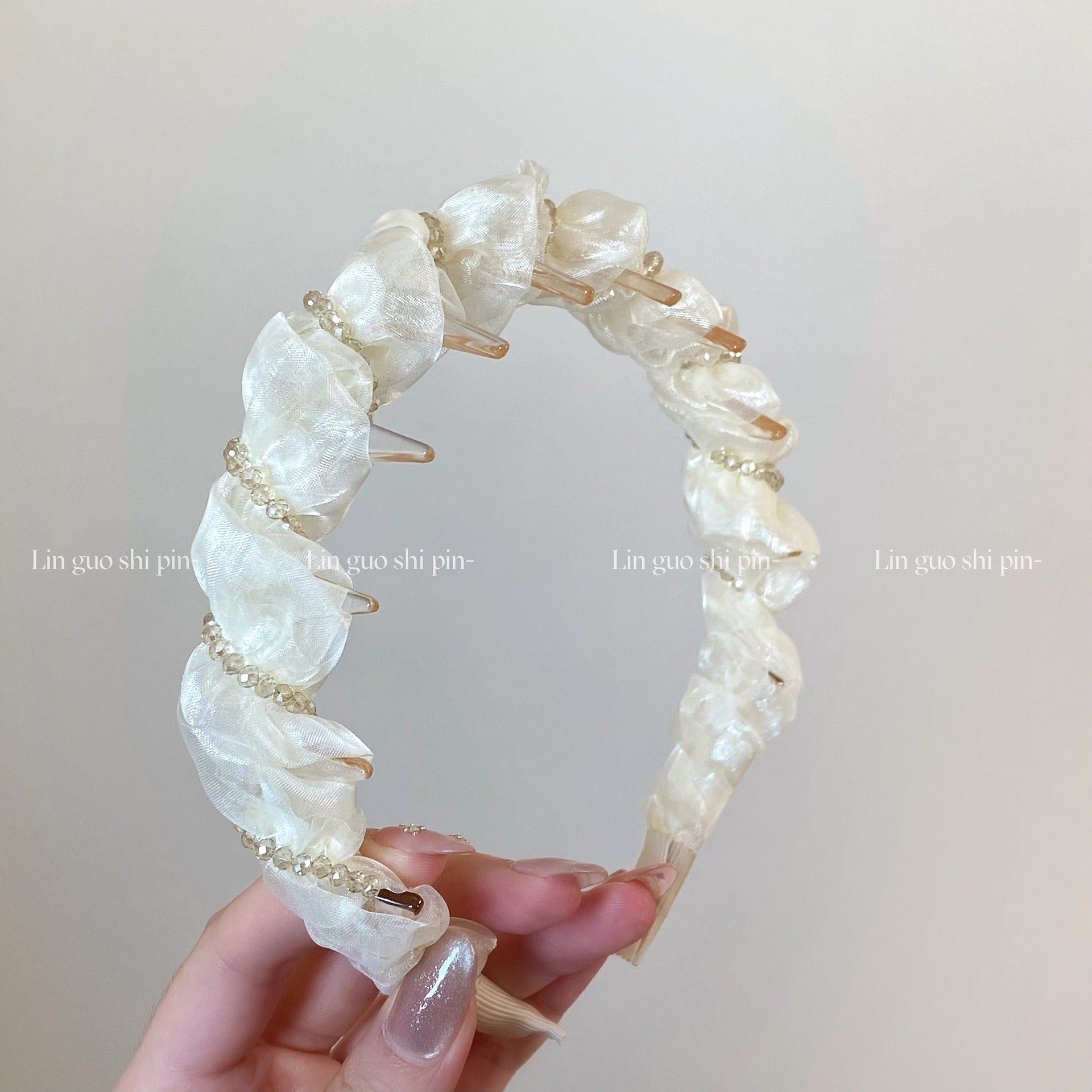 This elegant headband features a mesh design wrapped with pearls, adding a luxurious touch to any hairstyle. Designed with a high-top structure, it’s perfect for spring and summer, daily outings, or as a stylish wash-up accessory while keeping hair secure.