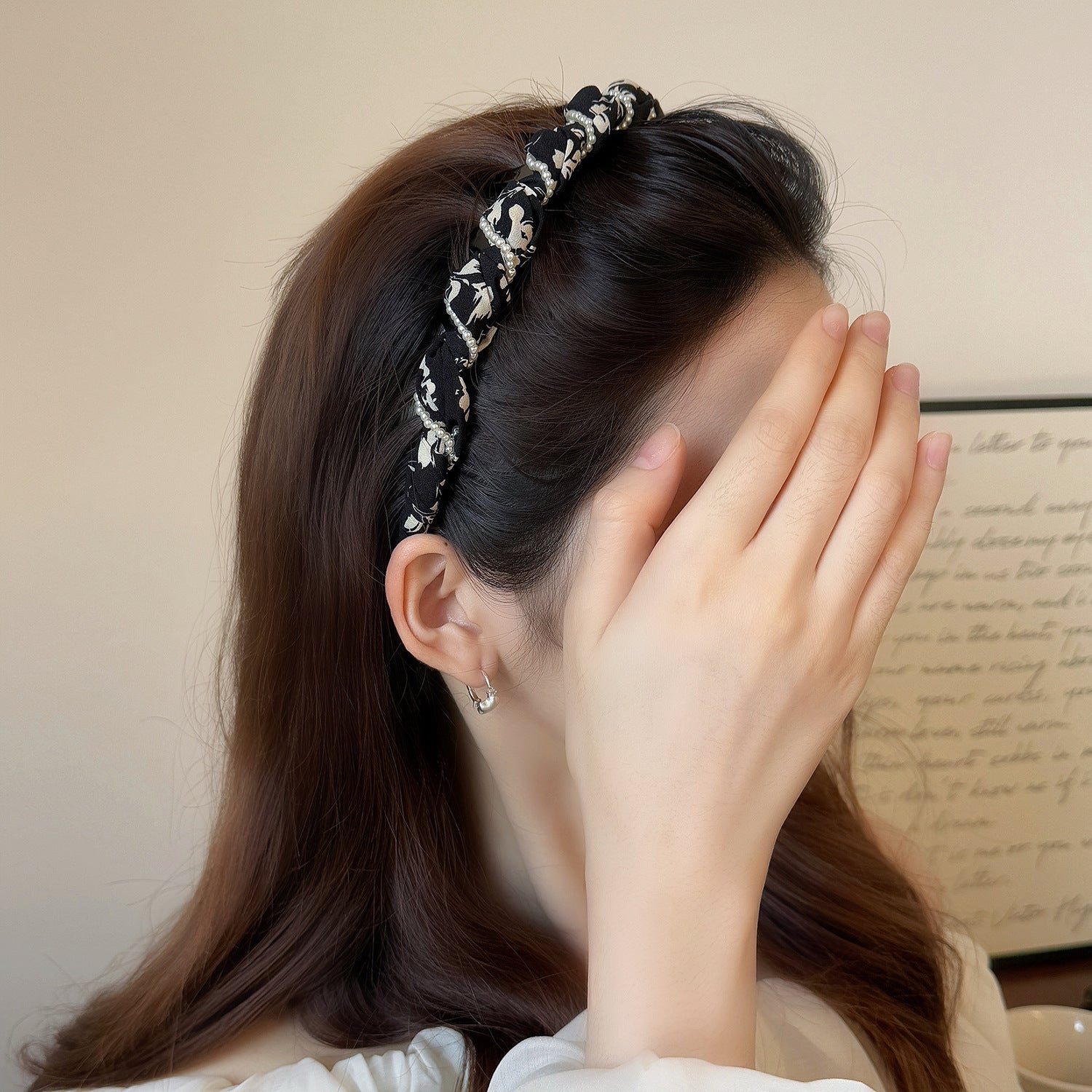 This elegant headband combines delicate pleats with a wrapped pearl chain for a refined, luxurious look. Designed with anti-slip teeth and a high-top structure, it keeps hair secure while adding sophistication to everyday outfits or outings.