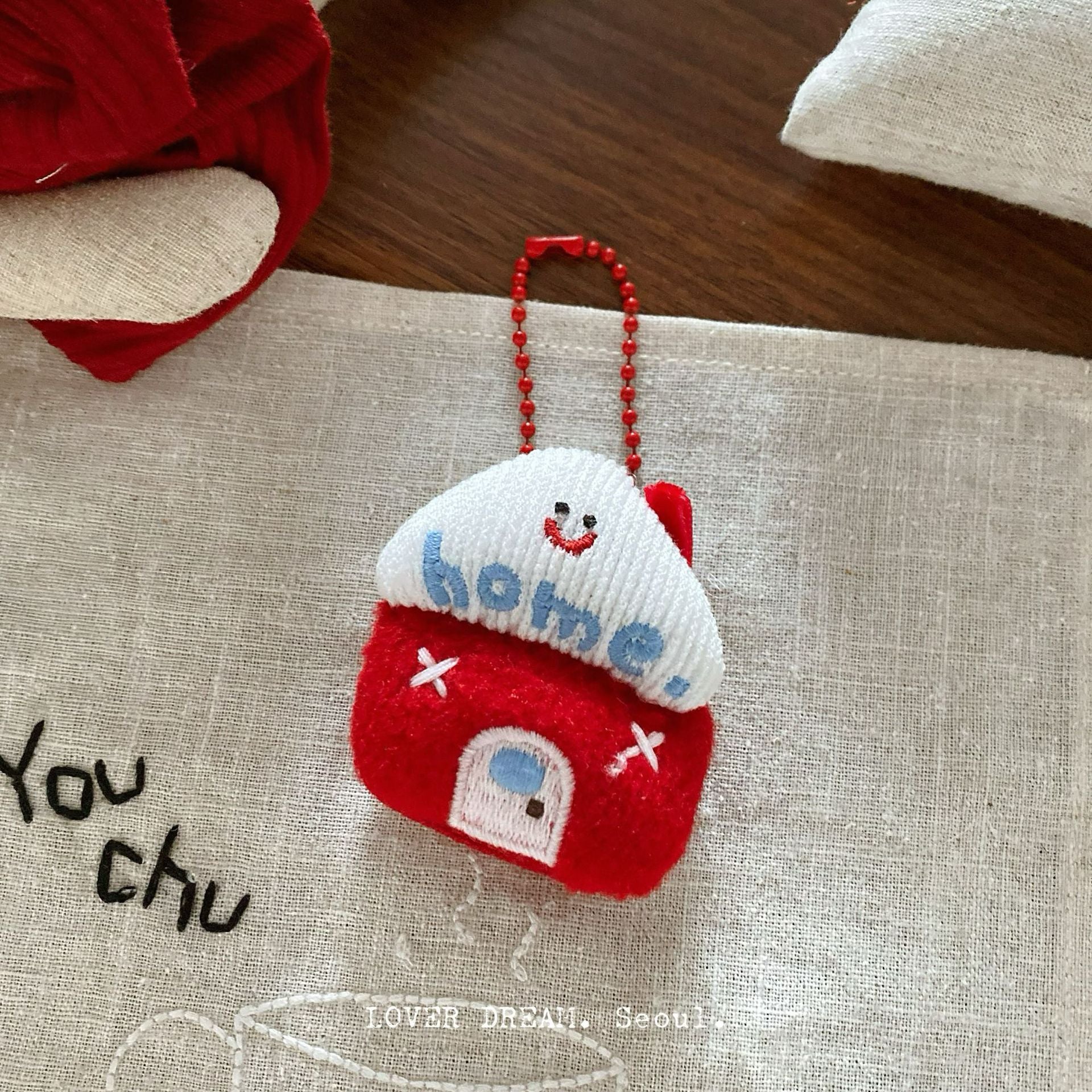 This festive keychain features a cute red cartoon design with a beaded chain, perfect for adding a playful touch to bags, keys, or gifts. Ideal for Christmas, New Year, or everyday use, it’s a versatile and charming accessory.