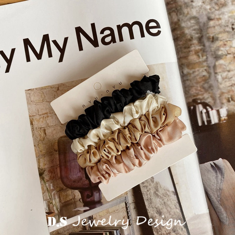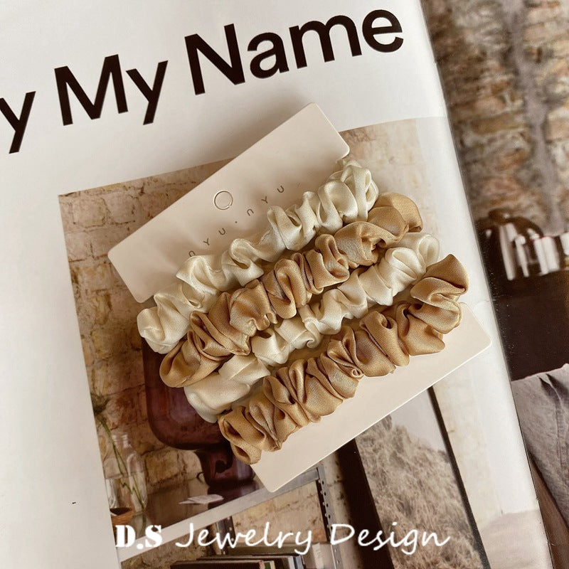 This mini hair tie features luxurious silk satin fabric, perfect for securing ponytails or small buns with a chic, polished look. Soft and gentle on hair, it adds an elegant, refined accent to everyday hairstyles or special occasions, combining style and comfort in one accessory.