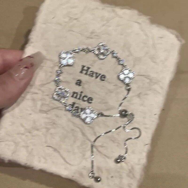 A delicate silver bracelet featuring a four-leaf clover and starry zircon accents. Elegant and sparkling, perfect for daily wear or gifting.