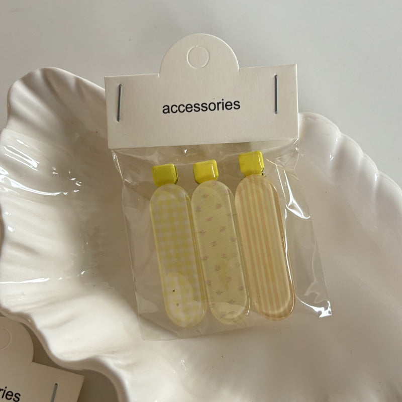 This charming hair clip set features jelly-style plaid clips with bow accents, perfect for securing bangs or side hair. Lightweight and versatile, it adds a playful, sweet touch to everyday hairstyles for girls and teens.