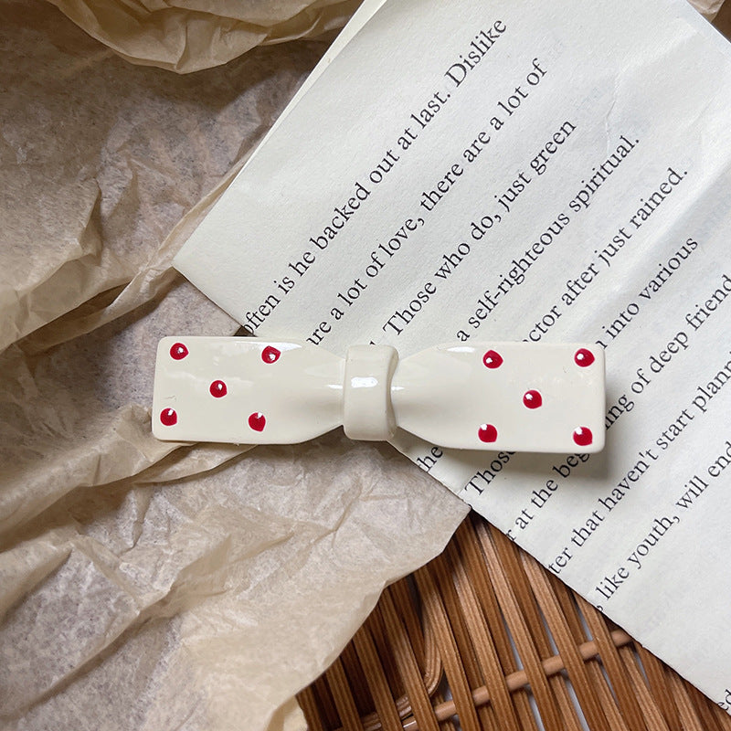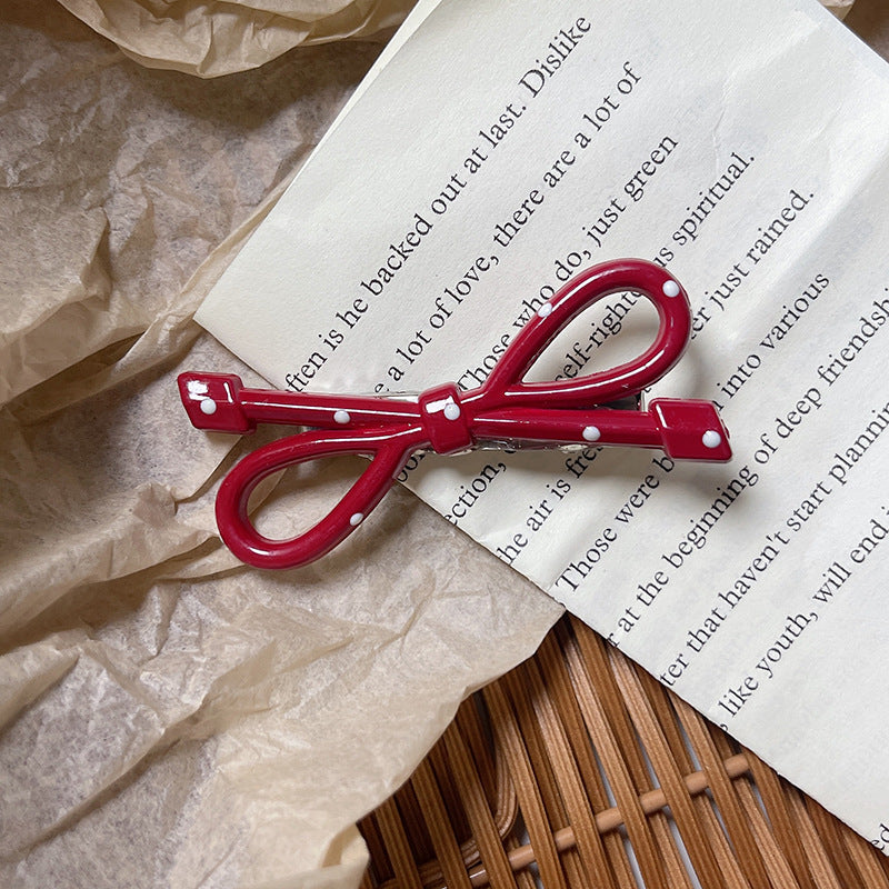Add a playful touch to your hairstyle with this sweet polka dot bow hair clip. Perfect for securing bangs or side hair, this duckbill-style clip is ideal for girls and young women who love cute accessories.