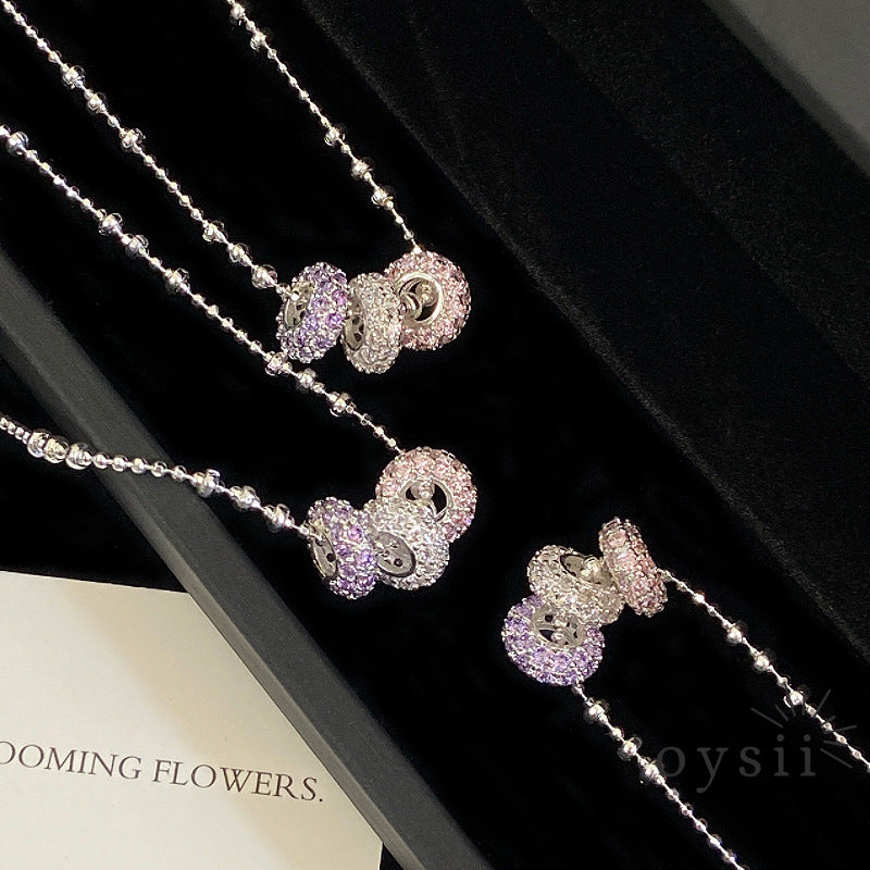 The Trinity Glow necklace features three interlocking circles adorned with dazzling pavé crystals in a vibrant tri-color design. This light-luxury, designer-inspired piece adds sparkle and sophistication to any outfit, making it perfect for layering or wearing solo as a statement accessory.
