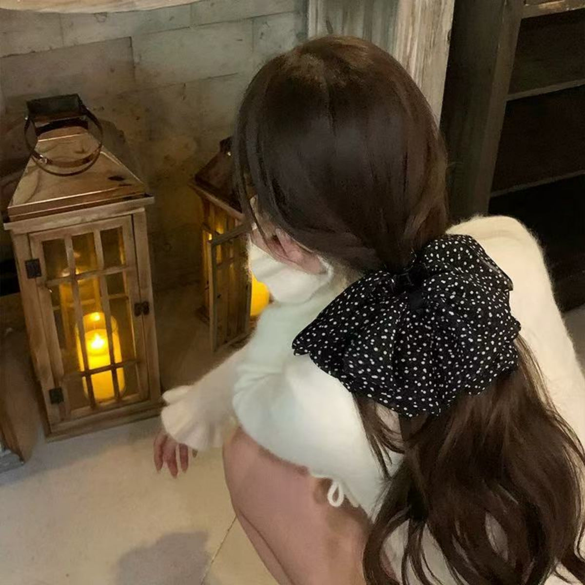 This polka dot bow hair claw combines vintage charm with elegant chiffon fabric, perfect for securing updos or back hairstyles. Its stylish design adds a polished, sophisticated touch to any autumn or winter look, making it ideal for daily styling or special occasions.